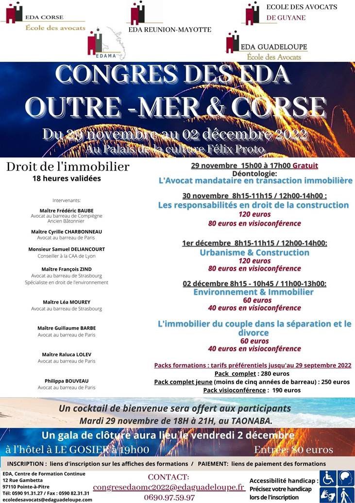 Les EDA de Guadeloupe, Martinique, Guyane, Réunion et Corse ont l'immense plaisir de vous convier à la première édition du CONGRES DES EDA D'OUTRE-MER & CORSE qui aura lieu du mardi 29 novembre au vendredi 2 décembre 2022.